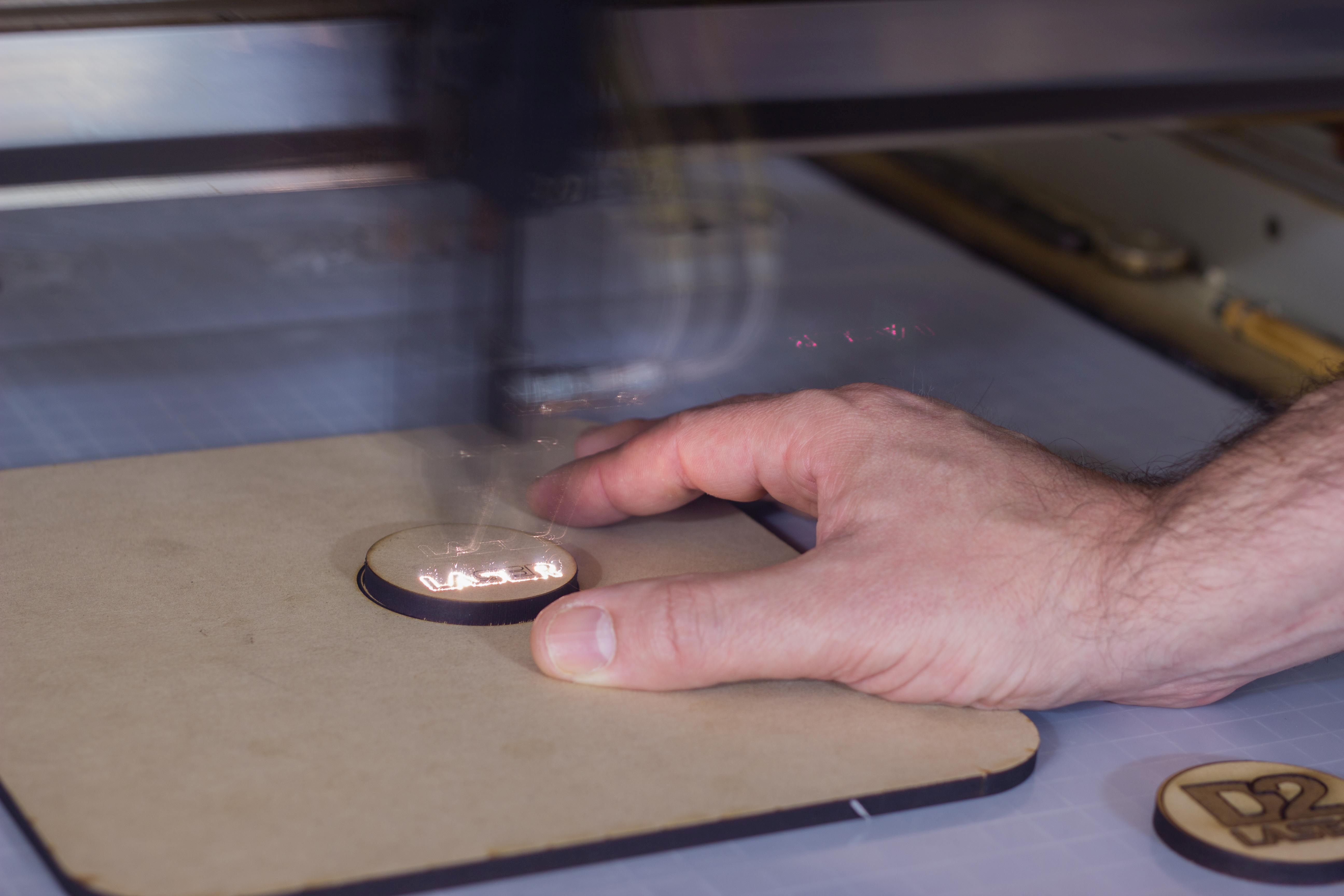 Trabajamos con plásticos, PAI, tela, cartón, madera, MDF (hasta 9mm de espesor), corcho, gomaeva y papel.